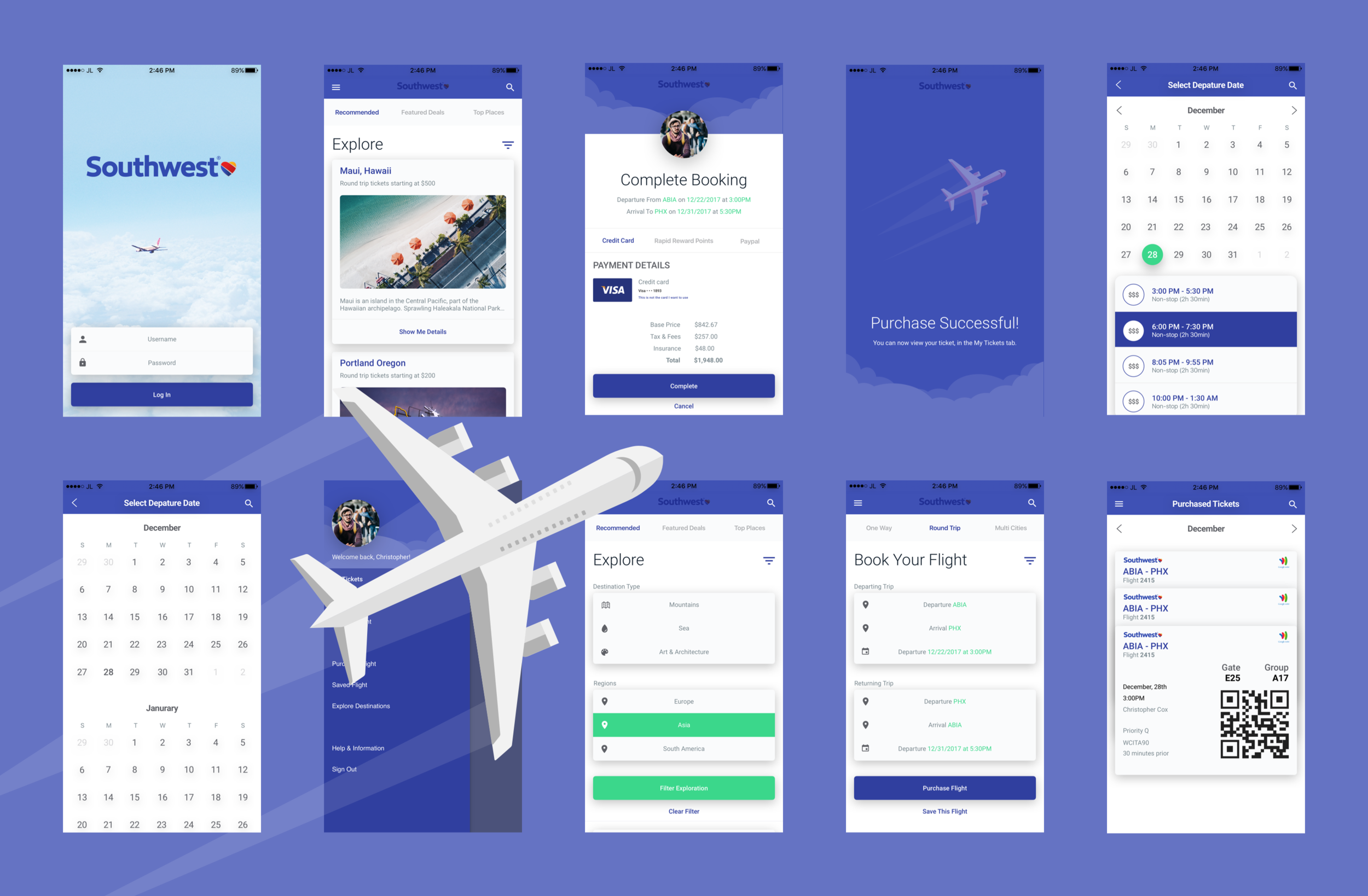 I had the opportunity to interview 6 people, these were my talking points: What part of the workflow complements best in mobile form? What is the best way of displaying the most prevalent information to buy a plane ticket What do you expect to see vs. want to see when researching, booking, and planning a trip? When and how do you use southwest.com currently?